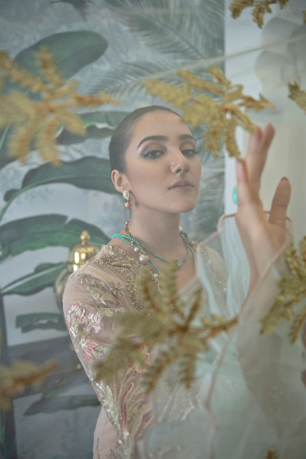 Trouser: Dyed Russian grip trouser (2.5 yards), offering a smooth, rich finish that perfectly complements the embroidered shirt and dupatta.